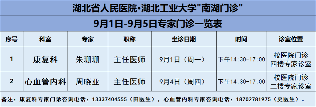 9月1日-9月5日,搜狐体育_nba虎扑篮球-直播|官网医院将邀请湖北省人民医院知名专家——康复科朱珊珊主任、心血管内科周晓亚主任两位专家教授前来校医院坐诊(具体坐诊信息见下),请广大师生、周边居民持续关注南湖门诊专家坐诊信息,如有: