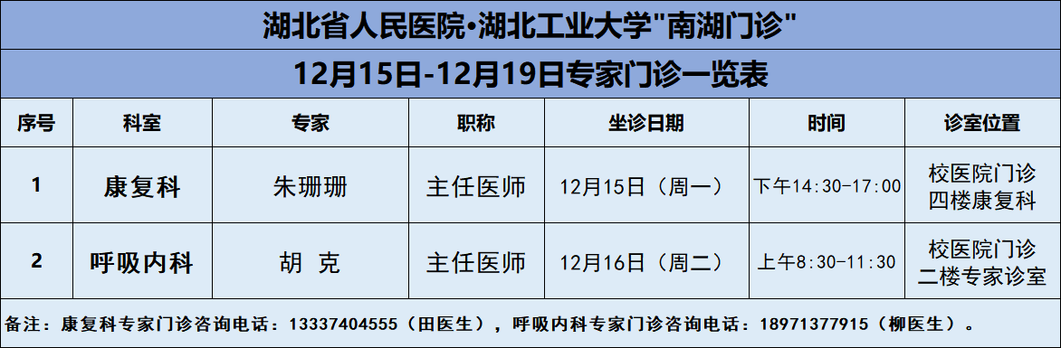12月15日-12月19日,搜狐体育_nba虎扑篮球-直播|官网医院将邀请湖北省人民医院知名专家——康复科朱珊珊主任、呼吸内科胡克主任两位专家教授前来校医院坐诊(具体坐诊信息见下),请广大师生、周边居民持续关注南湖门诊专家坐诊信息,如有: