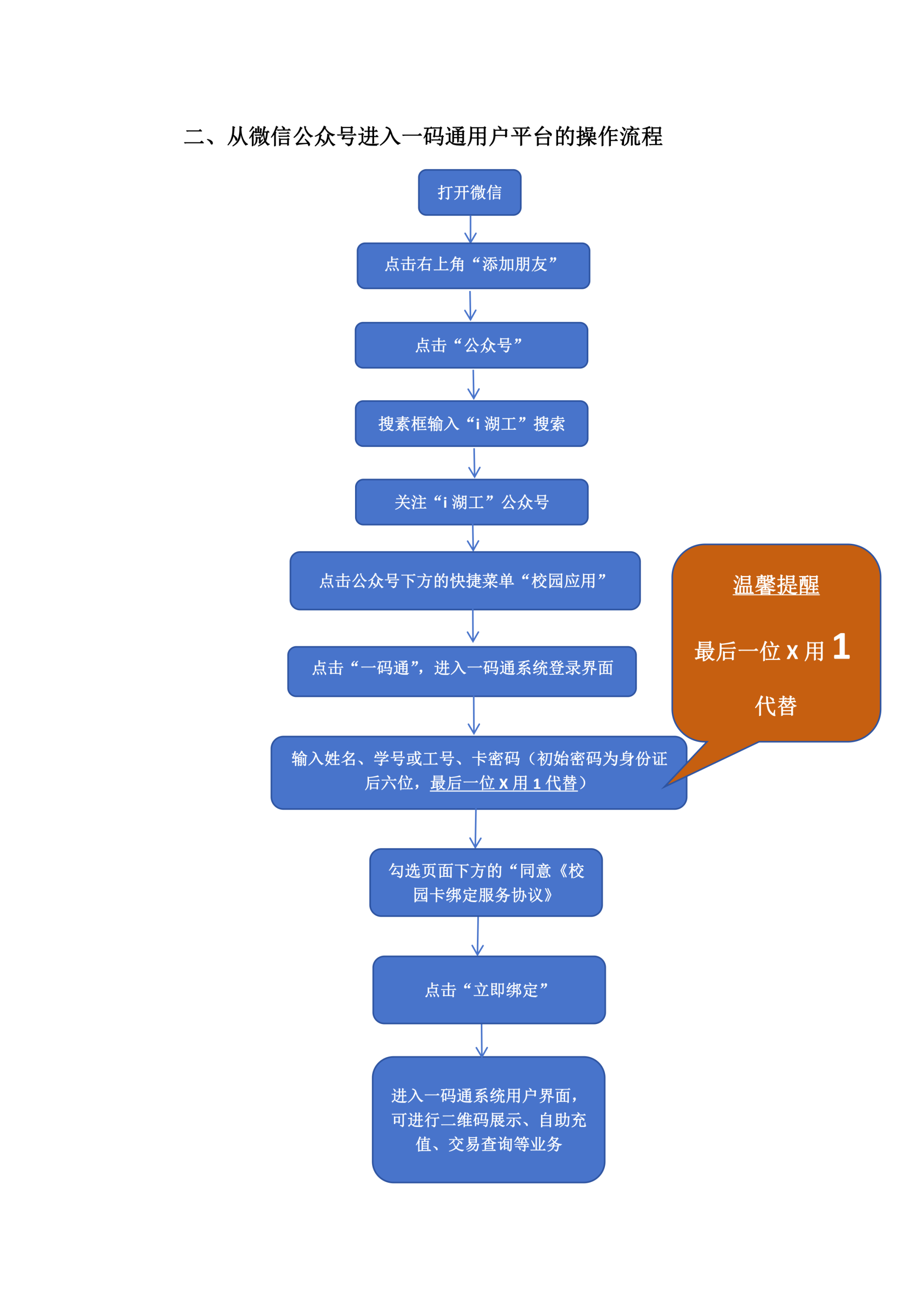3、自助服务:通过“i湖工”公众号-->校园应用-->一码通-->用户帮助,进行在线咨询和故障报修。