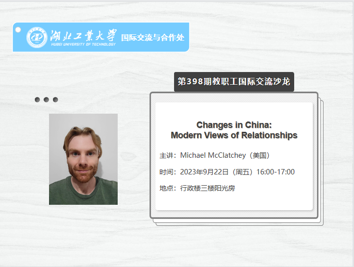 加群时请备注“单位+姓名+工号”,进群后及时按“学院+姓名”格式更名,并添加“湖工大国际”微信公众号,关注相关通知。在不影响正常工作的原则下,全校教职工均可灵活参加沙龙,本沙龙不收取任何费用。