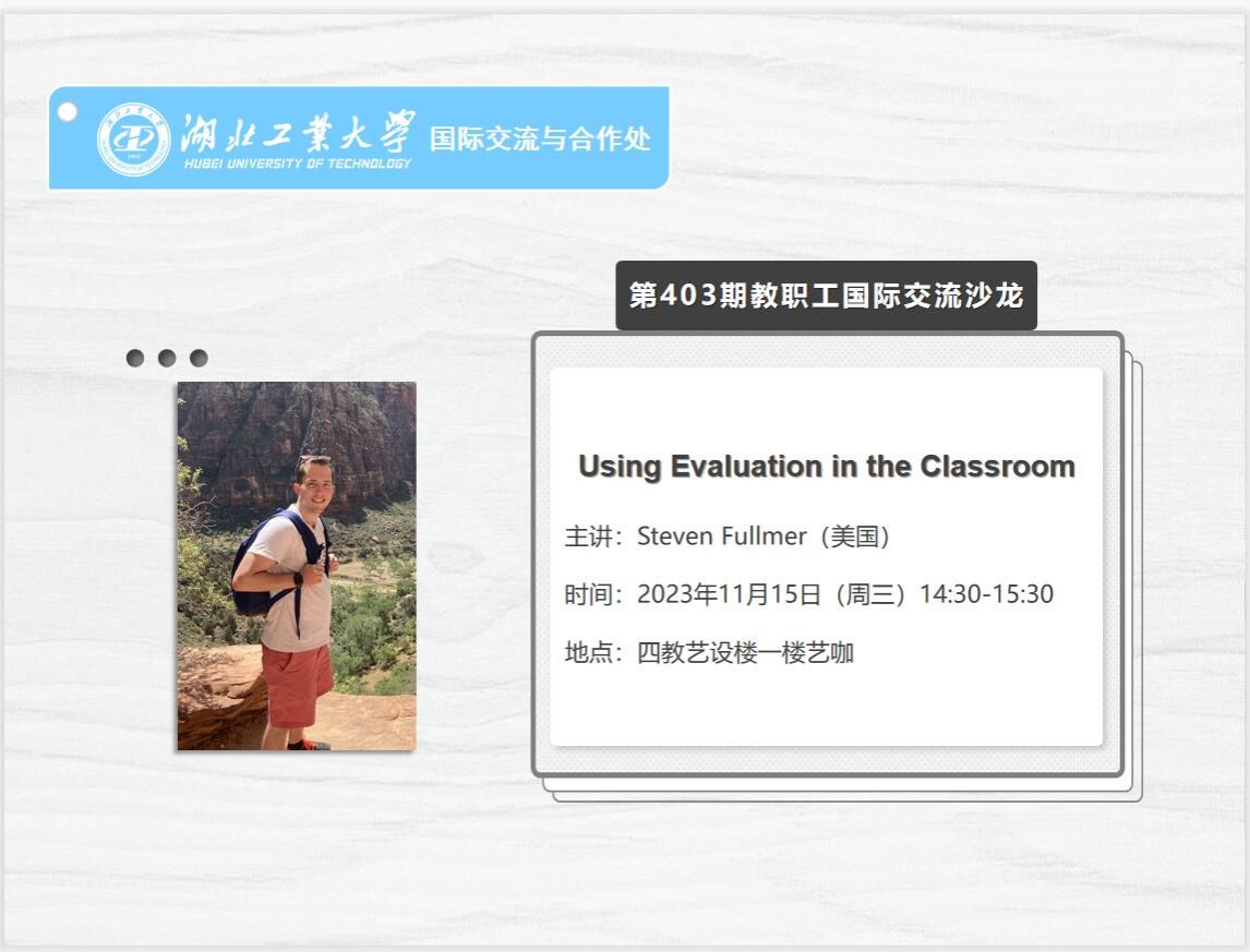 加群时请备注“单位+姓名+工号”,进群后及时按“学院+姓名”格式更名,并添加“湖工大国际”微信公众号,关注相关通知。在不影响正常工作的原则下,全校教职工均可灵活参加沙龙,本沙龙不收取任何费用。